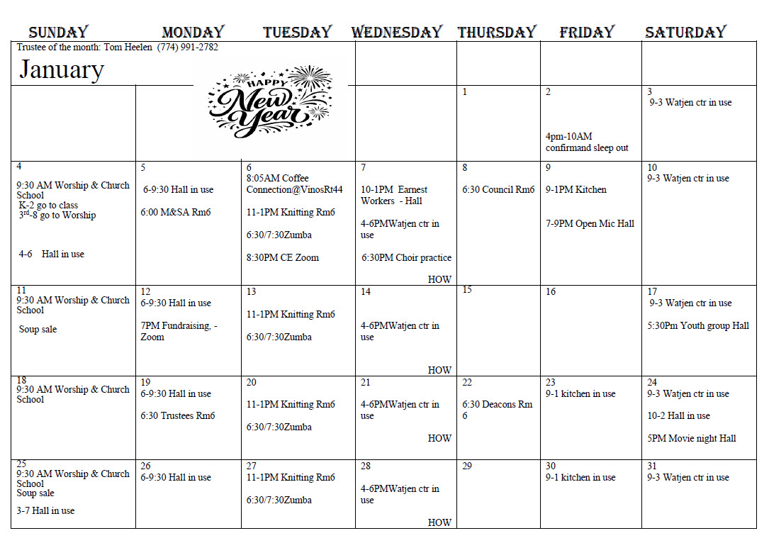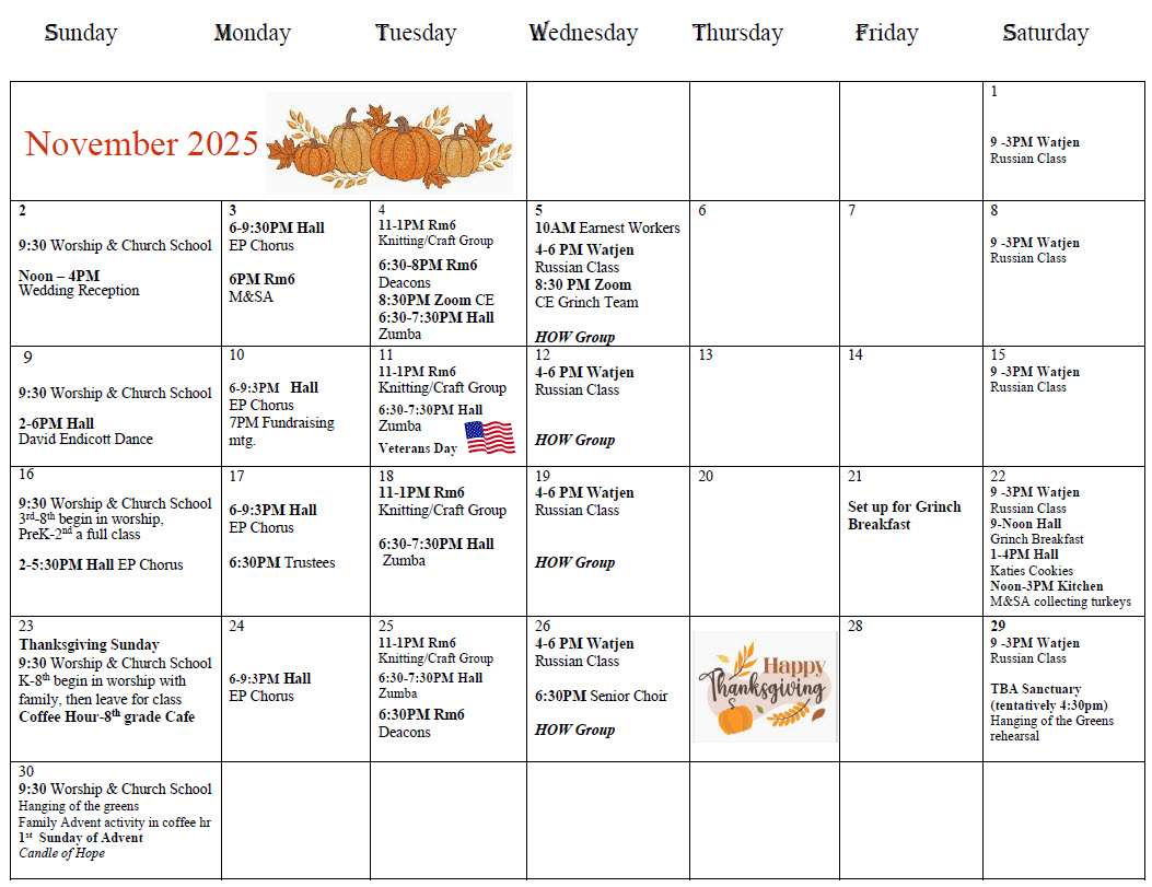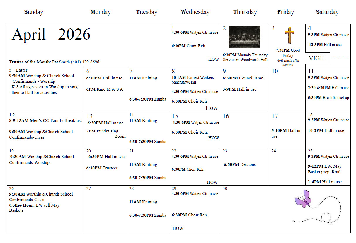 Click on the link below to see the monthly Church Calendar.